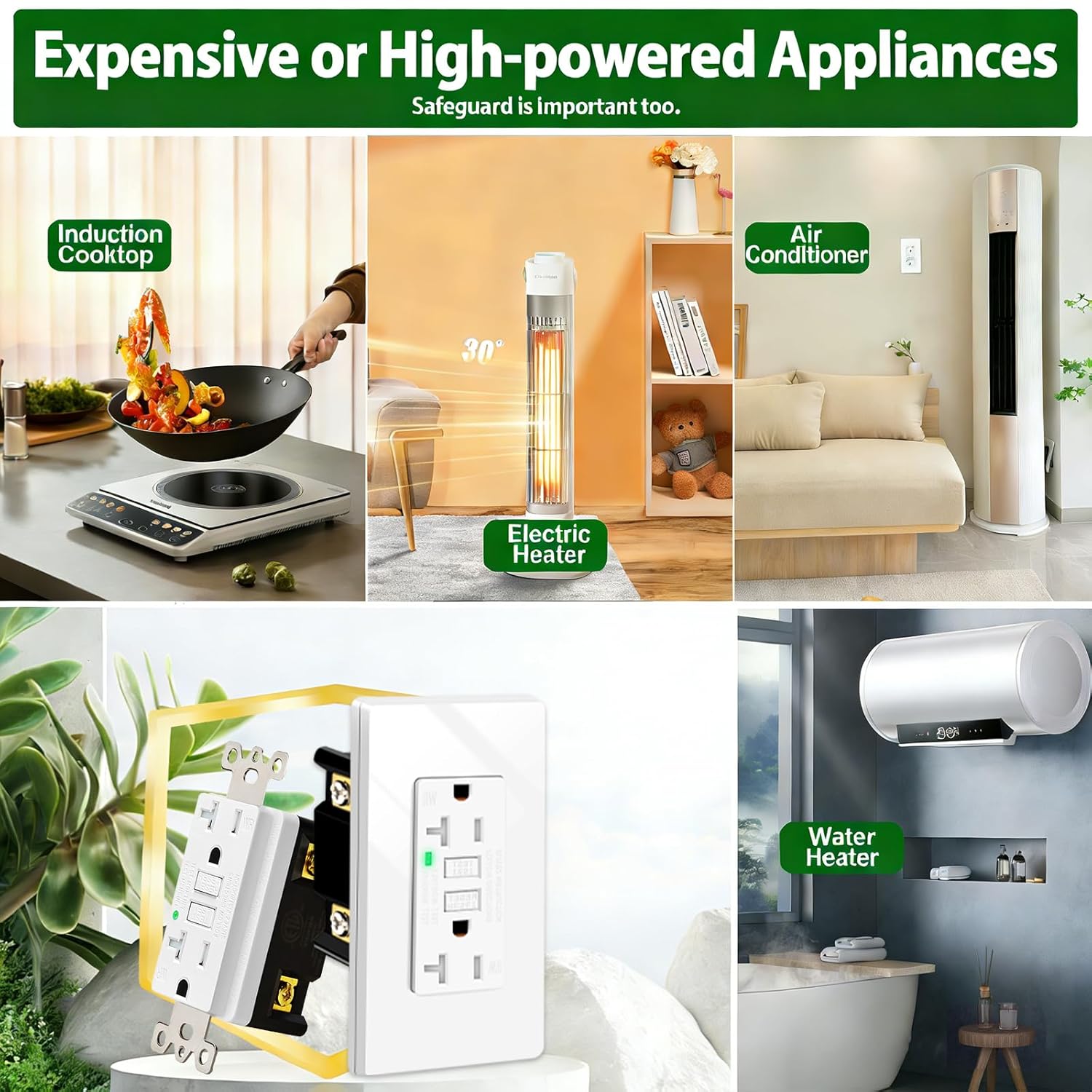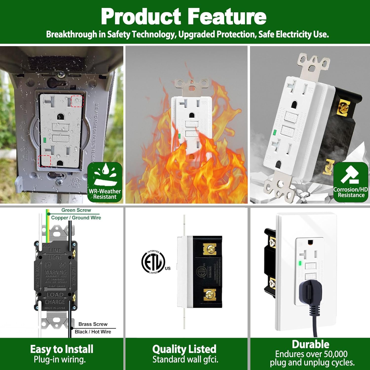 Specification Product 1 – Greencycle GFCI Outlet 20 Amp (3-Pack) Amp Rating: 20 Amp, 120V AC Type: GFCI (Ground Fault Circuit Interrupter) LED Indicator: Shows the status of the outlet (Power/Reset) Weather Resistant: Designed for outdoor use, ideal for wet areas ETL Listed: Meets high safety and quality standards Application: Residential & Commercial Grade Product 2 – Greencycle Dusk to Dawn Sensor Waterproof Rating: IP65 for outdoor use Voltage: 120V AC Automatic Function: Turns lights on at dusk and off at dawn Energy Saving: Reduces electricity consumption by controlling light usage Easy Installation: Compatible with most outdoor lighting fixtures Package Includes 3 x Greencycle GFCI Outlet 20 Amp (White) 1 x Greencycle Dusk to Dawn Sensor (Waterproof IP65)